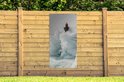 Tuinposters, ook wel tuindoek genoemd, zijn posters die specifiek geschikt zijn om buiten op te hangen. Dit tuindoek kan daarom tegen een stootje. Voor deze buitenposter is bisonyl zeil gebruikt. Dit zeil is een gecoat zeildoek met een fraaie afwerking. De tuinposter is UV-bestendig, waardoor deze niet verkleurt in de zon. In het doek zijn meerdere ringen geplaatst waardoor je het gemakkelijk op kan hangen! Tot een formaat van 120x80 cm zijn de ringen in de hoeken, bij grotere formaten komen de ringen om de 60 cm. Het doek kan uitstekend tegen de verschillende weersinvloeden en blijft gegarandeerd 3 jaar goed.