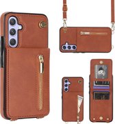 Selencia Hoesje - Geschikt voor Samsung Galaxy A55 (5G) - Sera Koordhoes met pashouder envelop - Taupe