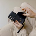 De koorden zijn zowel afneembaar als verstelbaar voor ultiem gebruiksgemak. Bovendien matchen ze perfect met de backcover. Met de handige schuifconstructie pas je het lange koord gemakkelijk aan naar de gewenste lengte. Verleng het koord wanneer je deze als cross-body wilt dragen en gebruik het polskoord wanneer je je smartphone veilig bij de hand wilt hebben. Daarnaast zijn de koorden dankzij de gouden haakjes afneembaar, zo kan je de hoes ook als losse backcover gebruiken.