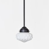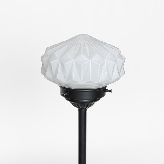 Deze Art Deco glaskap in opaal wit straalt als een eeuwige ster. Let op het ingewikkelde grafische decoratieve patroon dat als een diamant zal fonkelen in het interieur!