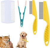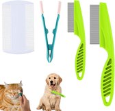 Deze uitgebreide huisdiervlooienkamset bevat vier essentiële kammen die perfect zijn voor het verzorgen van je huisdieren, zoals katten en honden. Met een combinatie van magische kammen, een zachte reinigingsborstel en een fijne dubbelzijdige kam, biedt deze set een alles-in-één oplossing voor het verwijderen van traanvlekken, klitten, vlooien, en ander vuil. De duurzame materialen en afgeronde tanden zorgen ervoor dat de kammen comfortabel en veilig zijn voor je huisdier, terwijl ze efficiënt zorgen voor een gladde en gezonde vacht.