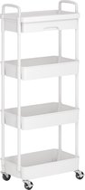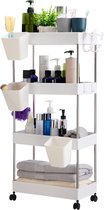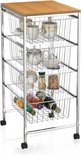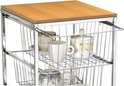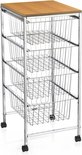 Met afmetingen van 34 x 76 x 36 cm is deze serveerwagen compact en ruimtebesparend. Toch biedt hij voldoende opbergruimte dankzij de 4 draadmanden, waar je gemakkelijk gebruiksvoorwerpen zoals fruit, kruiden, schoonmaakmiddelen of handdoeken in kunt opbergen. Het ontwerp is perfect voor kleine keukens, eetkamers of zelfs kantoren.