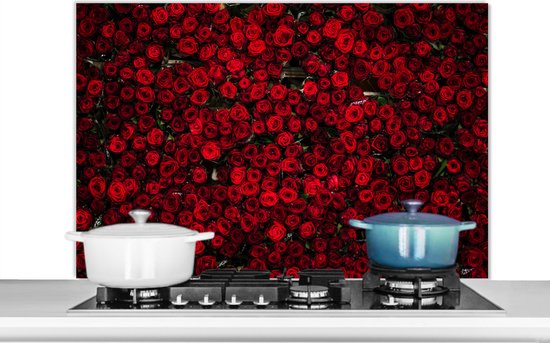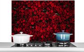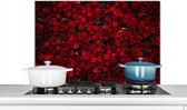 Spatscherm keuken 100x65 cm - Kookplaat achterwand Bloemen - Rozen - Rood - Muurbeschermer - Spatwand fornuis - Hoogwaardig aluminium