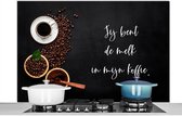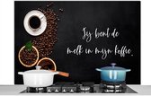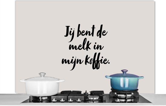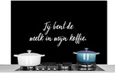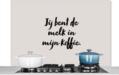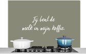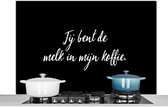 Spatscherm keuken 120x80 cm - Kookplaat achterwand Taupe - Jij bent de melk in mijn koffie - Quote - Muurbeschermer - Spatwand fornuis - Hoogwaardig aluminium