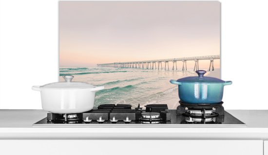 Spatscherm keuken 70x50 cm - Kookplaat achterwand Zee - Strand - Brug - Natuur - Zonsondergang - Muurbeschermer - Spatwand fornuis - Hoogwaardig aluminium