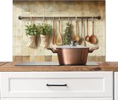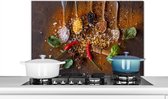 KitchenYeah® Spatscherm keuken 80x55 cm - Kookplaat achterwand kruiden - Rustiek - Specerijen - Stilleven - Muurbeschermer hittebestendig - Spatwand fornuis - Hoogwaardig aluminium - Wanddecoratie industrieel
