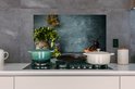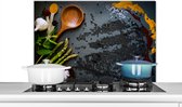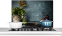 Keukenaccessoires - Kruiden - Specerijen - Pan - Mes - Grijs - Rustiek - Achterwand keuken