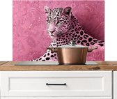 Spatscherm keuken 90x60 cm - Kookplaat achterwand Patronen - Luxe - Wit - Roze - Muurbeschermer - Spatwand fornuis - Hoogwaardig aluminium