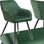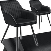 tectake®- Fluwelen stoel met gestikt patroon - Moderne eetkamerstoel - Kuipstoel - Woonkamer, eetkamer, lounge of kaptafelstoel - Div. kleuren - Zwart/zwart