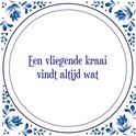Tegel met spreuk |Spreuktegels | Wanddecoratie | Een vliegende kraai vangt/vindt altijd wat