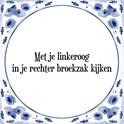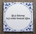 Tegeltje met Spreuk (Tegeltjeswijsheid): Met je linkeroog in je rechter broekzak kijken + Kado verpakking & Plakhanger