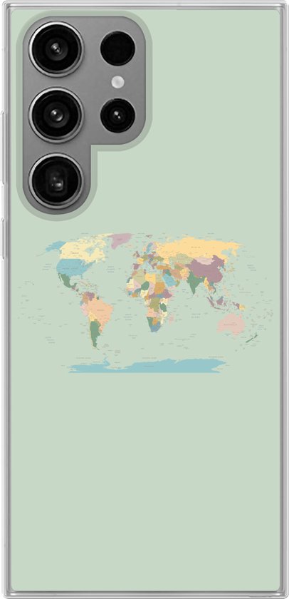 Telefoonhoesje Geschikt voor Samsung Galaxy S23 Ultra hoesje - Wereldkaart - Realistisch - Kaart - Siliconen Telefoonhoesje Telefoonhoesje