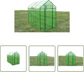 vidaXL Serre - Inloopkas - Inloopkas met 12 schappen 143x214x196 cm staal - Plantenkwekerij - Tuinhuis - Polyetheen