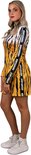- Jurk Kroegtijger - Bestaande uit: Jurk - Maten 34 t/m 44 - Materiaal: 100% Polyester Uitgebreide informatie jurk: - Rits middenvoor - Stof is rekbaar