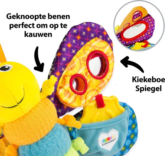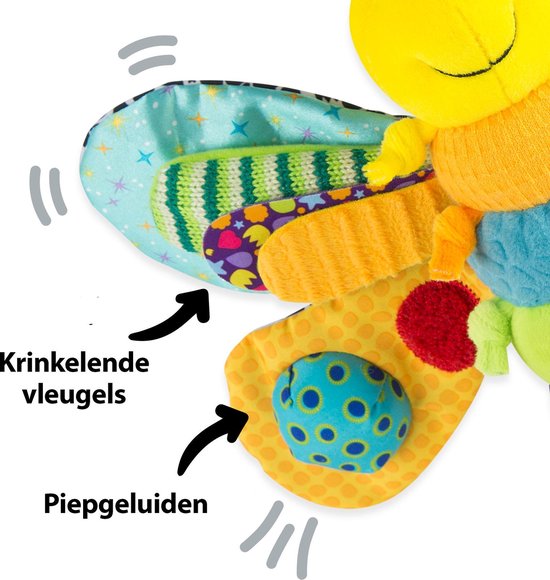 Dit is echt een aanrader! Onze dochter van 5 maanden is er al een tijdje weg van. De felle kleuren trekken direct haar aandacht.. de vleugels geven uren knisperplezier, er zit een pieper in en een bijtschijf waar ze lekker op kan sabbelen nu ze tandjes krijgt. Is het geld dubbel en dwars waard! Ook leuk als kraamcadeautje.