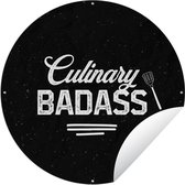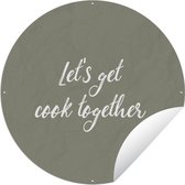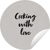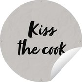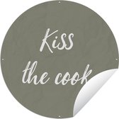 Tuincirkel Quotes - Wit - Koken - Hartje - Always kiss the cook - Spreuken - 60x60 cm - Ronde Tuinposter - Buiten