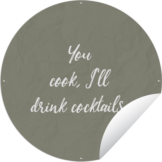 Tuincirkel Spreuken - You cook, I'll drink cocktails - Quotes - Cocktails - 150x150 cm - Ronde Tuinposter - Buiten