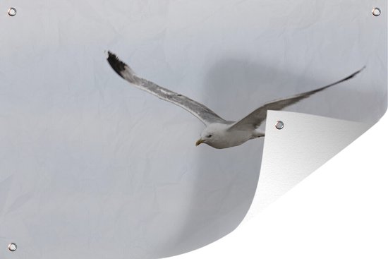 Tuinposter 60x40 cm - Tuindecoratie Pontische meeuw tijdens de vlucht - Poster voor in de tuin - Buiten decoratie - Schutting tuinschilderij - Tuindoek muurdecoratie - Wanddecoratie balkondoek