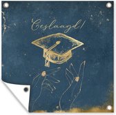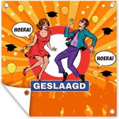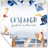 Tuinposters, ook wel tuindoek genoemd, zijn posters die specifiek geschikt zijn om buiten op te hangen. Dit tuindoek kan daarom tegen een stootje. Voor deze buitenposter is bisonyl zeil gebruikt. Dit zeil is een gecoat zeildoek met een fraaie afwerking. De tuinposter is UV-bestendig, waardoor deze niet verkleurt in de zon. In het doek zijn meerdere ringen geplaatst waardoor je het gemakkelijk op kan hangen! Tot een formaat van 120x80 cm zijn de ringen in de hoeken, bij grotere formaten komen de ringen om de 60 cm. Het doek kan uitstekend tegen de verschillende weersinvloeden en blijft minstens 3 jaar goed.