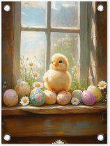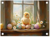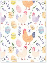 Tuinschilderij - Patroon - Kip - Paaseieren - Tuinposters buiten