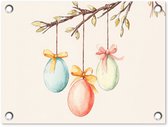 Tuinposter 40x30 cm - Tuindecoratie Patroon - Kip - Paaseieren - Poster voor in de tuin - Buiten decoratie - Schutting tuinschilderij - Tuindoek muurdecoratie - Wanddecoratie balkondoek - Pasen - Paasdecoratie - Paas versiering