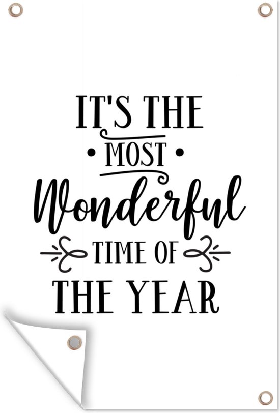 Tuinposters buiten Kerst quote "It's the most wonderful time of the year" met een witte achtergrond - 60x90 cm - Tuindoek - Buitenposter