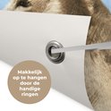 Tuinposters, ook wel tuindoek genoemd, zijn posters die specifiek geschikt zijn om buiten op te hangen. Dit tuindoek kan daarom tegen een stootje. Voor deze buitenposter is bisonyl zeil gebruikt. Dit zeil is een gecoat zeildoek met een fraaie afwerking. De tuinposter is UV-bestendig, waardoor deze niet verkleurt in de zon. In het doek zijn meerdere ringen geplaatst waardoor je het gemakkelijk op kan hangen! Tot een formaat van 120x80 cm zijn de ringen in de hoeken, bij grotere formaten komen de ringen om de 60 cm. Het doek kan uitstekend tegen de verschillende weersinvloeden en blijft gegarandeerd 3 jaar goed.