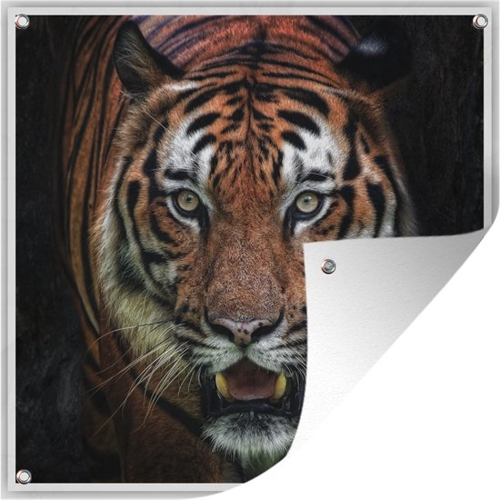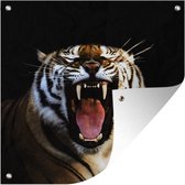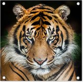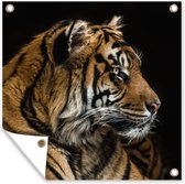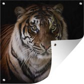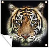 Tuinposters Tijger - Kop - Zwart - 50x50 cm - Tuindoek - Buitenposter