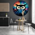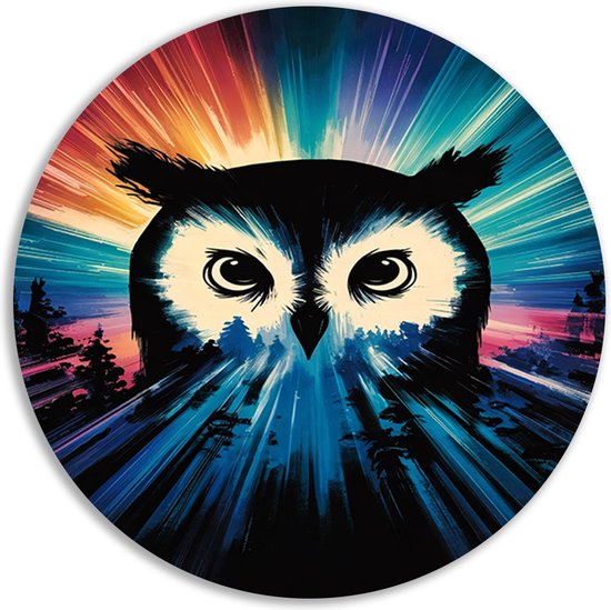 Uil muurcirkel - Dieren schilderij - Wanddecoratie rond Kleuren - Muurdecoratie landelijk - Schilderij rond - Wanddecoratie slaapkamer muurcirkel aluminium 50x50 cm
