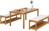 - Materiaal: PE-rattan, gepoedercoat staal en massief acaciahout met olieafwerking