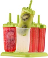 VITAMO™ IJslolly Vormen - IJsvormpjes - IJsjeshouder - Zelf ijsjes en ijsblokjes maken - Anti-knoei - Complete set met trechter en borsteltje - BPA-vrij - 6 Stuks - Groen