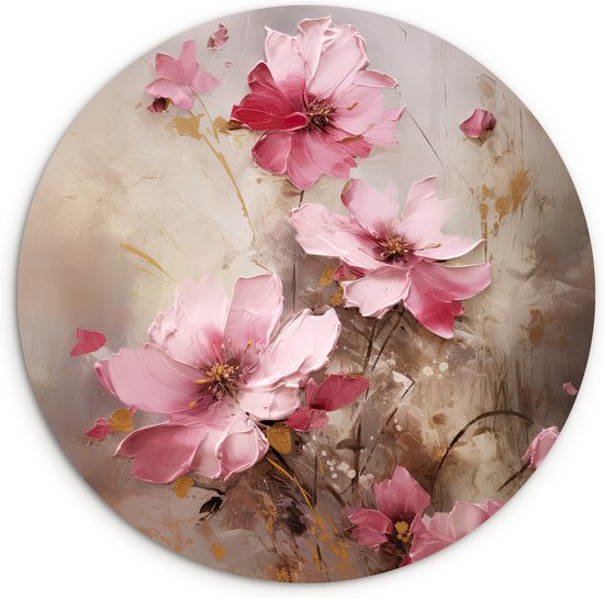 WallCircle - Wandcirkel bloemen olieverf 30x30 cm - Roze ronde schilderijen woonkamer - Wandbord kleurrijk rond - Muurdecoratie abstracte kunst - Kamer accessoires binnen - Roze decoratie - Wanddecoratie muurcirkel - Woonaccessoires