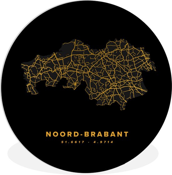 WallCircle - Wandcirkel ⌀ 120 - Noord-Brabant - Nederland - Wegenkaart - Gold - Ronde schilderijen woonkamer - Wandbord rond - Muurdecoratie cirkel - Kamer decoratie binnen - Wanddecoratie muurcirkel - Woonaccessoires XXL