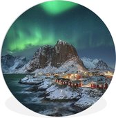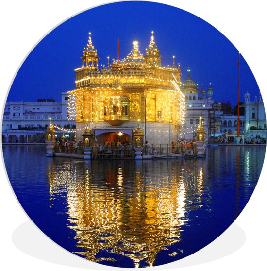 WallCircle - Wandcirkel ⌀ 60 - Verlichte Harmandir Sahib Tempel in de avond - Ronde schilderijen woonkamer - Wandbord rond - Muurdecoratie cirkel - Kamer decoratie binnen - Wanddecoratie muurcirkel - Woonaccessoires