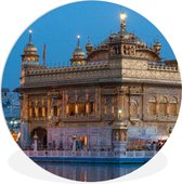 Muurcirkel binnen - Verlichte Harmandir Sahib Tempel in de avond - Wanddecoratie rond