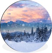 Wanddecoratie rond - Bos - Sneeuw - Winter - Muurcirkel binnen