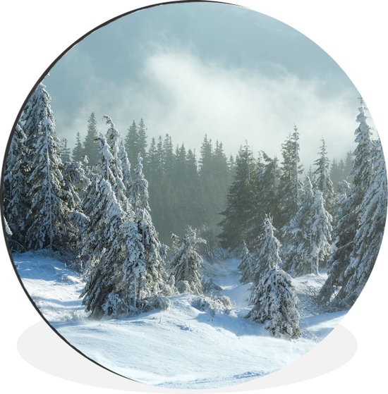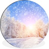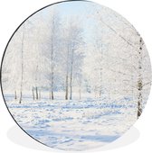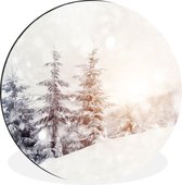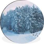 WallCircle - Wandcirkel - Muurcirkel - Bos - Sneeuw - Winter - Aluminium - Dibond - ⌀ 120 cm - Binnen en Buiten XXL