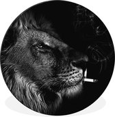 Wanddecoratie rond - Leeuw - Roken - Zwart - Wit - Muurcirkel binnen