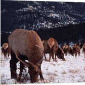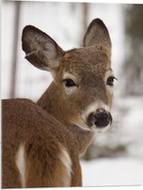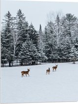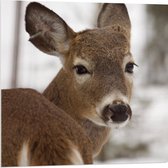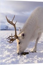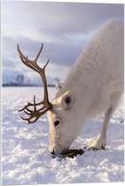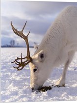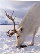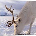 WallClassics - Acrylglas - Grazend Wit Hert in de Sneeuw - 80x80 cm Foto op Acrylglas (Wanddecoratie op Acrylaat)