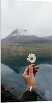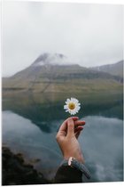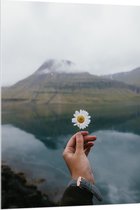 WallClassics - Acrylglas - Madeliefje tussen Berg - 75x100 cm Foto op Acrylglas (Wanddecoratie op Acrylaat)
