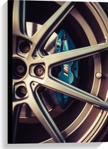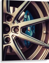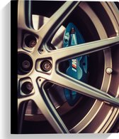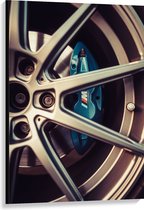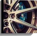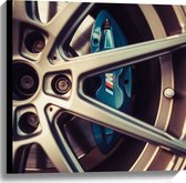 WallClassics - Canvas - Blauwe Remklauwen in Autowiel - 30x30 cm Foto op Canvas Schilderij (Wanddecoratie op Canvas)