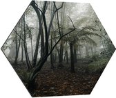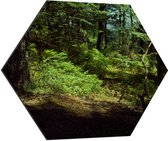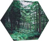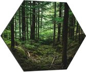 WallClassics - Dibond Hexagon - Dicht Begroeid Bos - 80x69.6 cm Foto op Hexagon (Met Ophangsysteem)