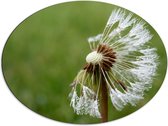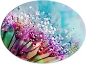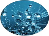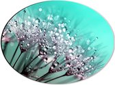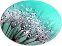 WallClassics - Dibond Ovaal - Druppels op Zaden van Paardebloem - 80x60 cm Foto op Ovaal (Met Ophangsysteem)