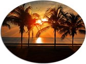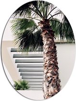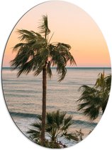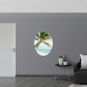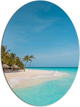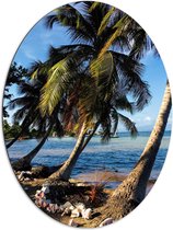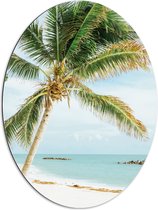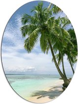 WallClassics - Dibond Ovaal - Palmboom op Wit Strand - 72x96 cm Foto op Ovaal (Met Ophangsysteem)