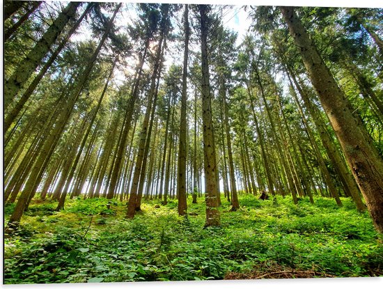 WallClassics - Dibond - Vol Groen Bos - 80x60 cm Foto op Aluminium (Met Ophangsysteem)