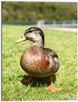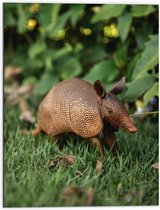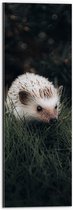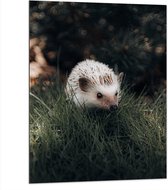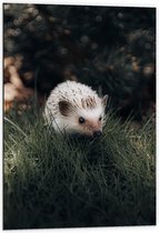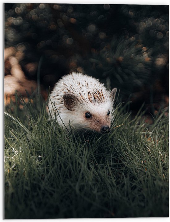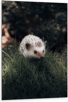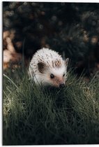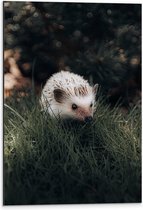 WallClassics - Dibond - Witte Egel in het Gras - 60x80 cm Foto op Aluminium (Wanddecoratie van metaal)