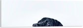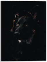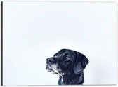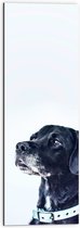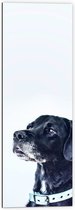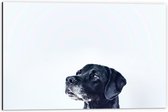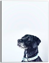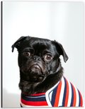 WallClassics - Dibond - Zwarte Mopshond met Gestreept Shirt tegen Witte Achtergrond - 30x40 cm Foto op Aluminium (Wanddecoratie van metaal)