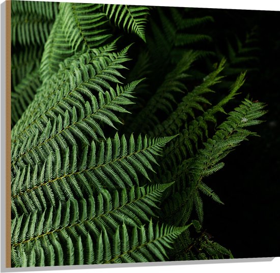 WallClassics - Hout - Close-up Groene Bladeren - 100x100 cm - 12 mm dik - Foto op Hout (Met Ophangsysteem)