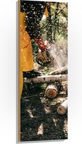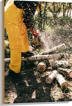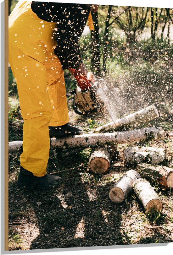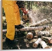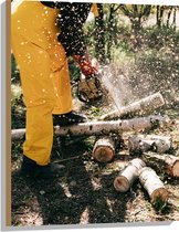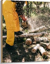 WallClassics - Hout - Houtzager in Actie - 80x120 cm - 12 mm dik - Foto op Hout (Met Ophangsysteem)