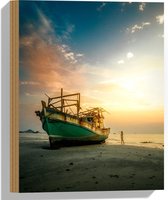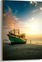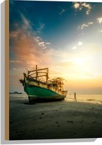 WallClassics - Hout - Oud Schip gestrand - 30x90 cm - 12 mm dik - Foto op Hout (Met Ophangsysteem)